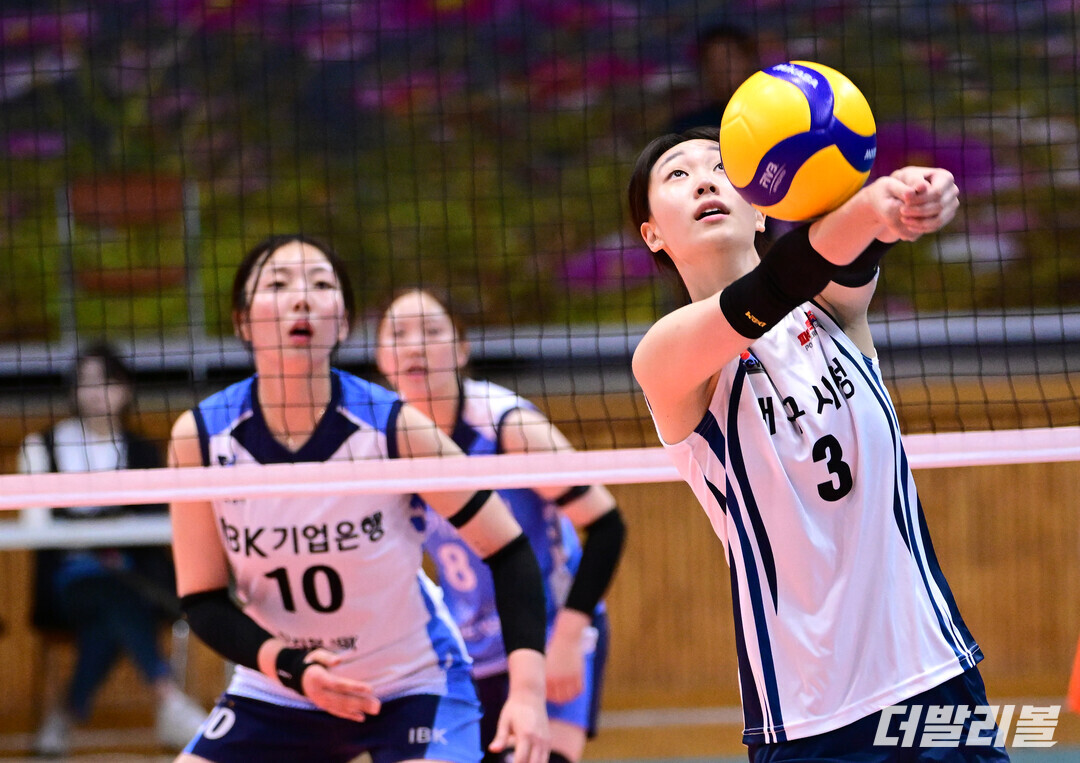 [더발리볼 = 유진형 기자] 5일 충청북도 단양군체육관에서 '2025 한국실업배구연맹&프로배구퓨처스 챔프전 단양대회', 대구시청과 IBK기업은행의 경기가 열렸다.