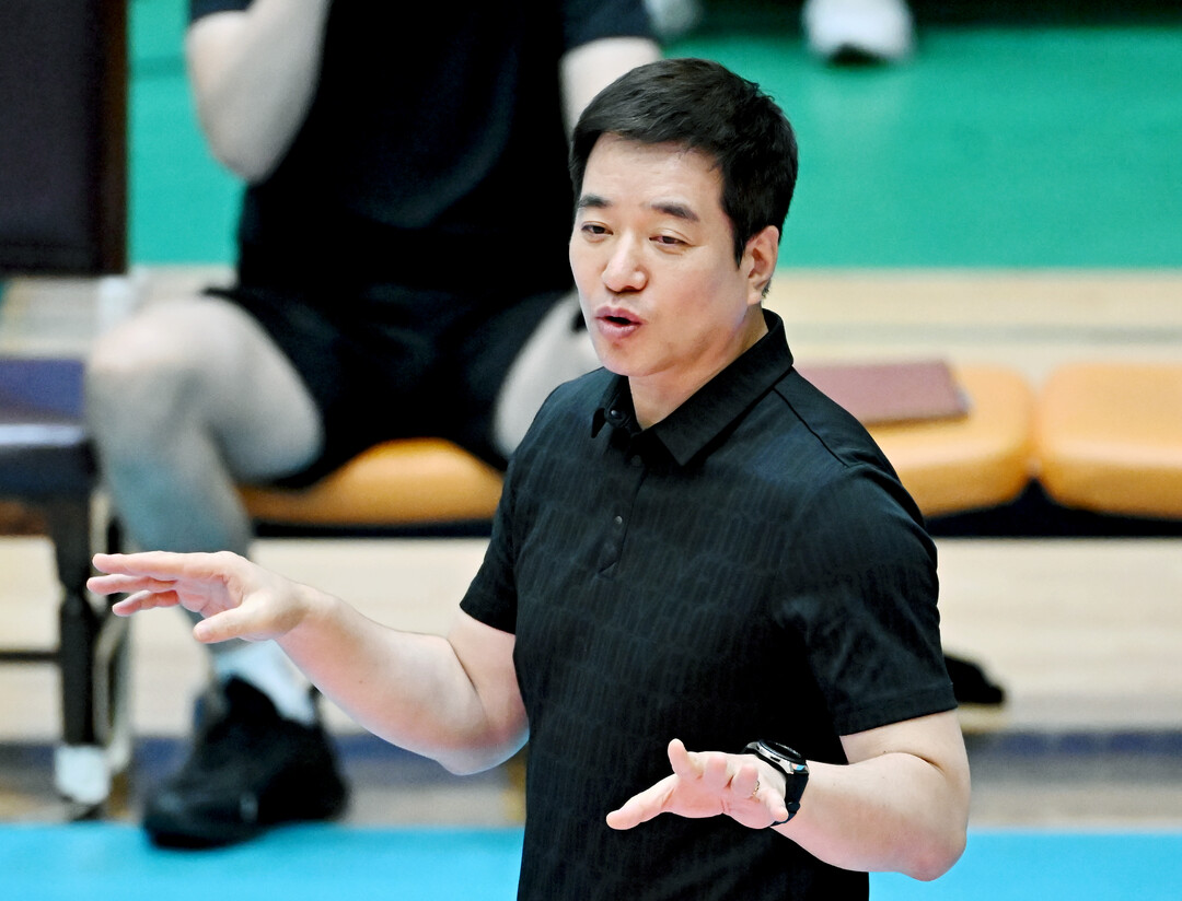 화성시청 임태복 감독이 선수들에 지시를 하고 있다.