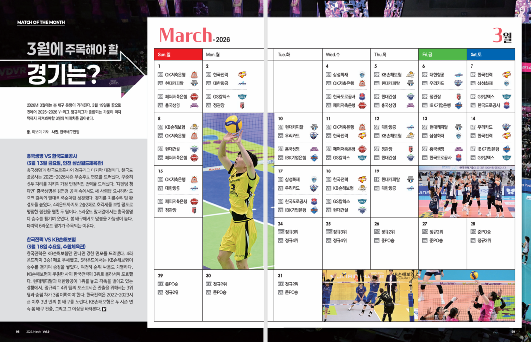[더발리볼 = 이보미 기자] 2026년 3월에는 봄배구 운명이 가려진다. 3월 19일을 끝으로 진에어 2025~2026 V-리그 정규리그가 종료되는 가운데 마지막까지 지켜봐야할 3월의 빅매치를 꼽아봤다.