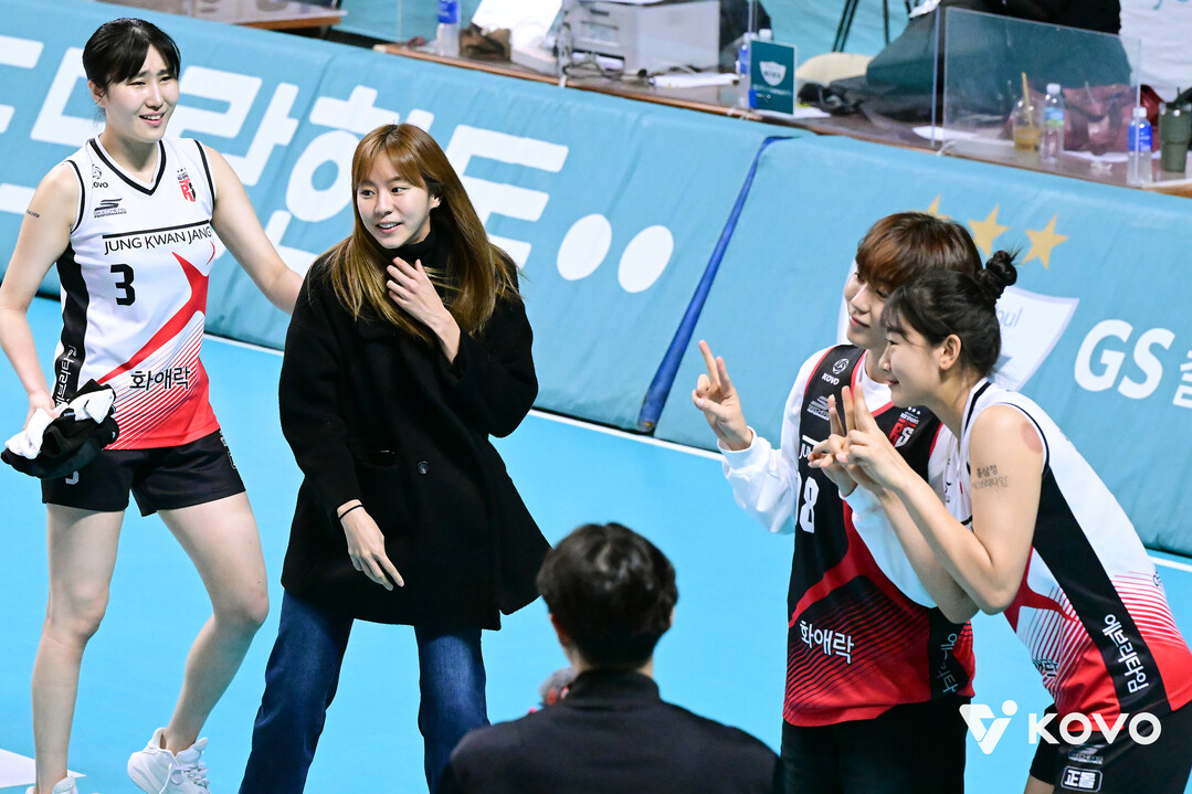 Q. 여자 프로배구 정관장 팬으로 알려졌습니다. 스스로도 ‘뒤늦게 배구에 입덕해서 정관장을 응원하고 있다’고 말하기도 했는데요. ‘입덕’하게 된 계기가 있었을까요.